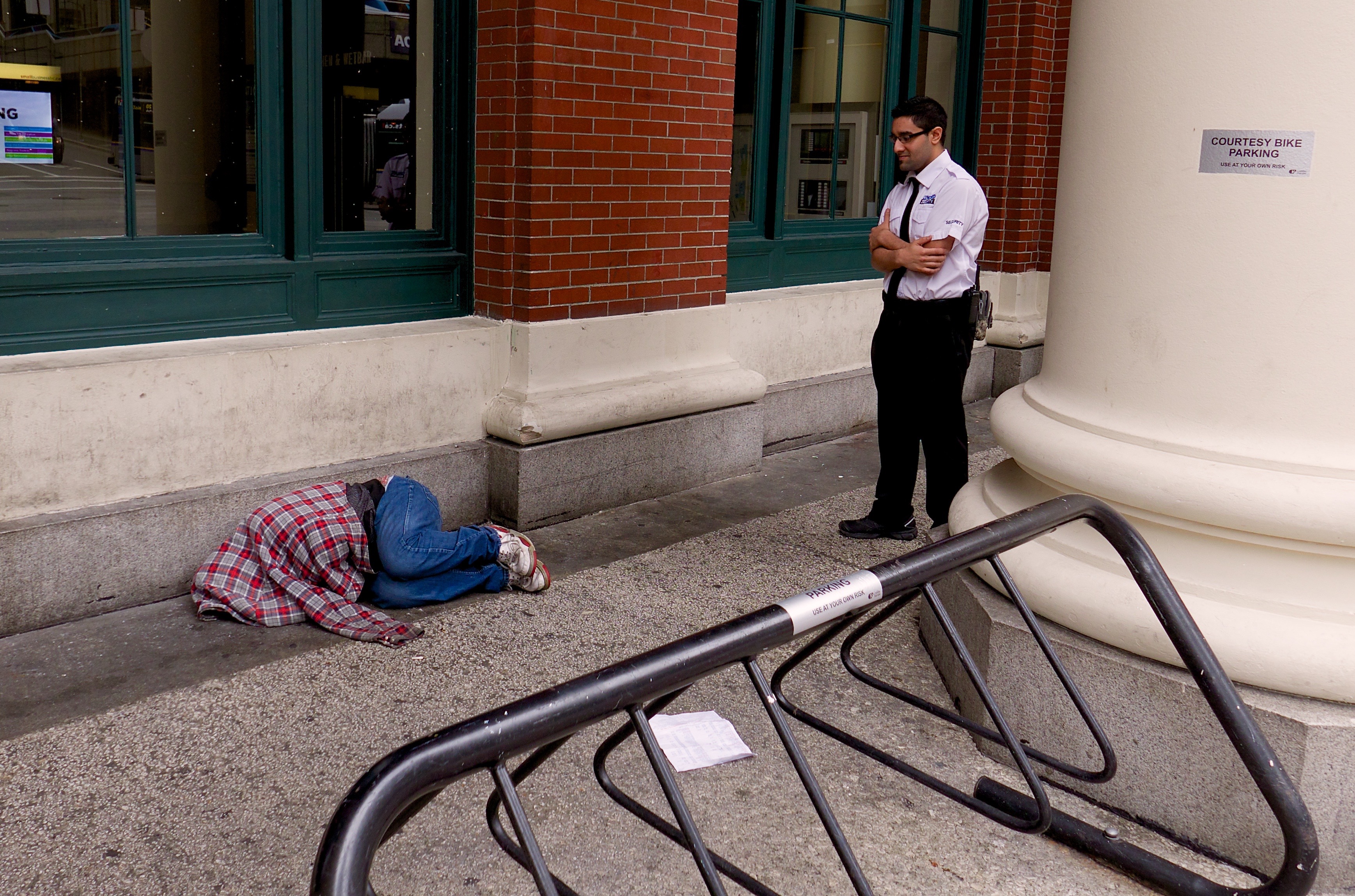 That's courtesy bike parking, not courtesy sleeping! He was quickly moved along.... That’s courtesy bike parking, not courtesy sleeping! He was quickly moved along….
